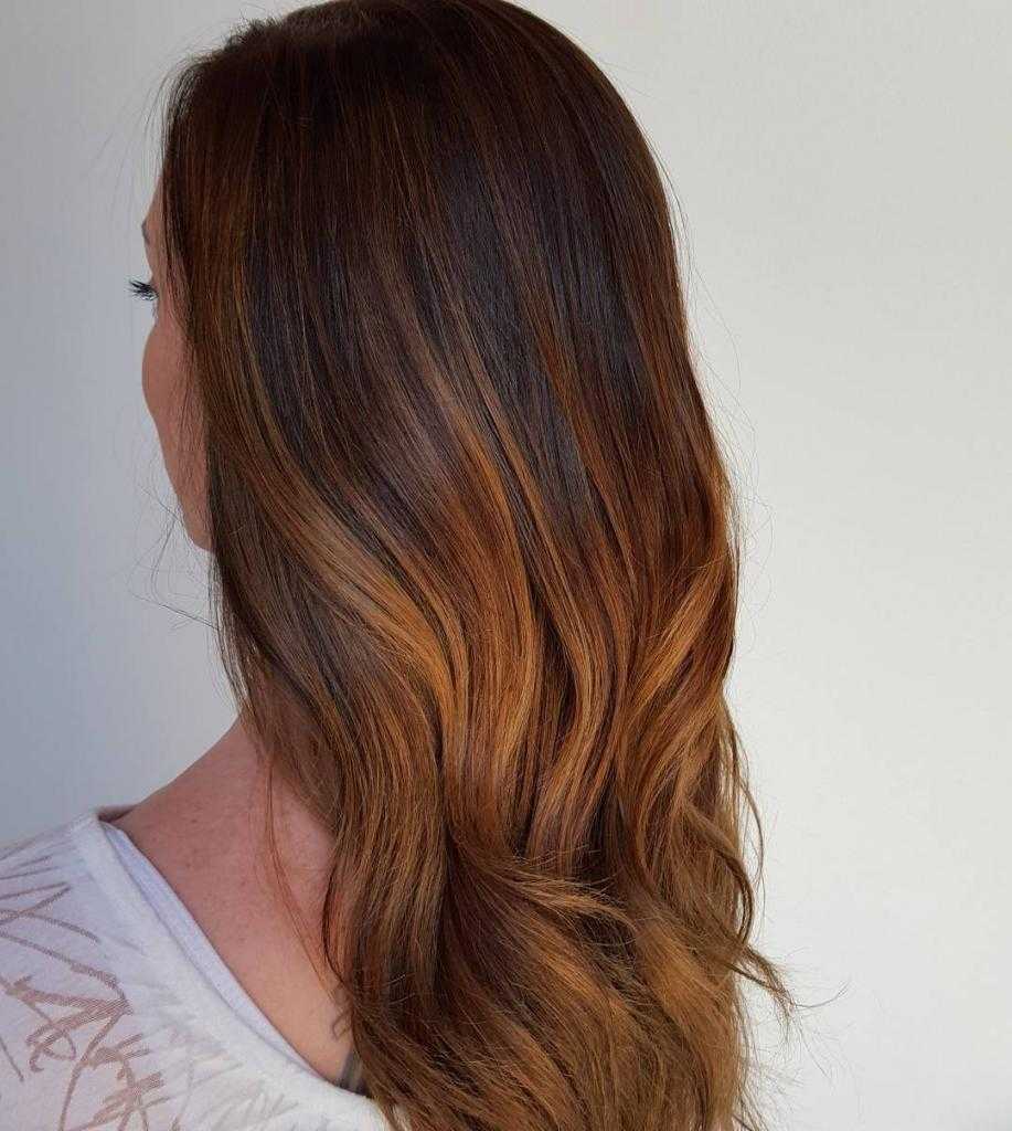 Техника выполнения заключается в том, что несколько тонов темной краски наносят на пряди. Мастер, когда будет выполнять мелирование на темные волосы, должен отступить от корней 10 см, не меньше. После этого, он занимается плавным переходом к другим оттенкам.