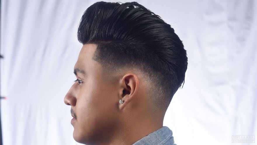 Такая прическа делается на прямых волосах и отлично вписывается в деловые образы. Она предполагает длинные волосы на макушке и темени, которые постепенно укорачиваются. Чем короче волосы, тем светлее они кажутся. За счет этого и создается характерный фейд-эффект. Чтобы концы лежали правильно, применяется бритва.