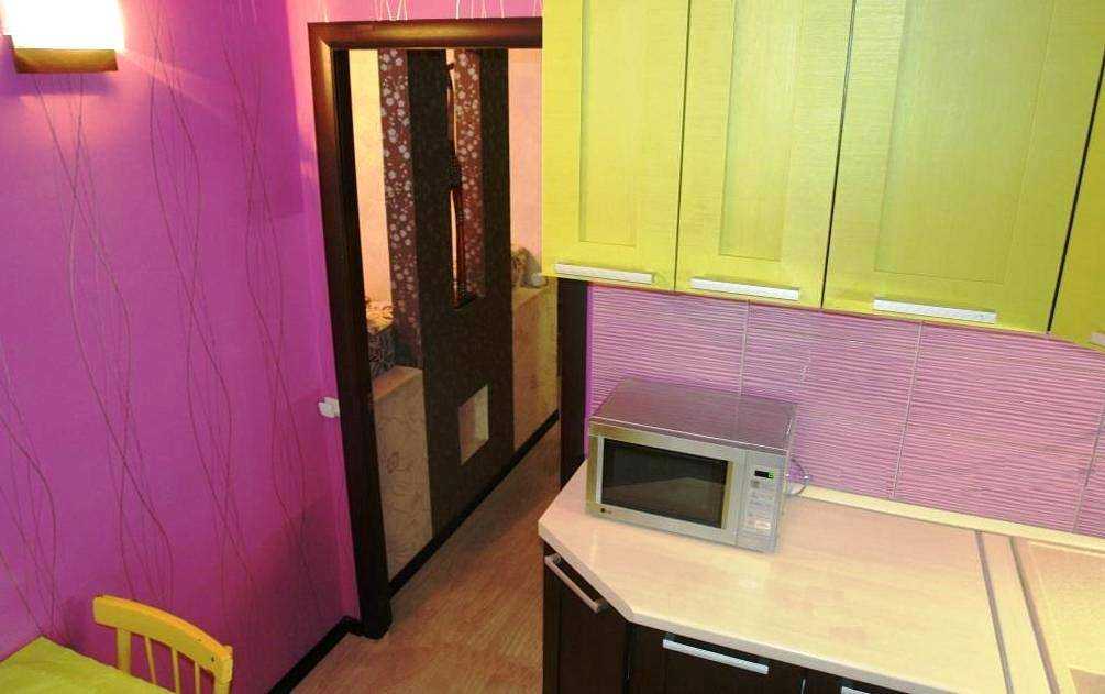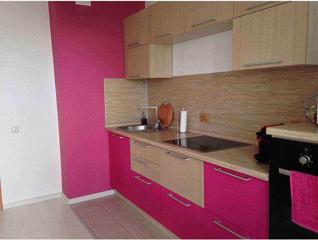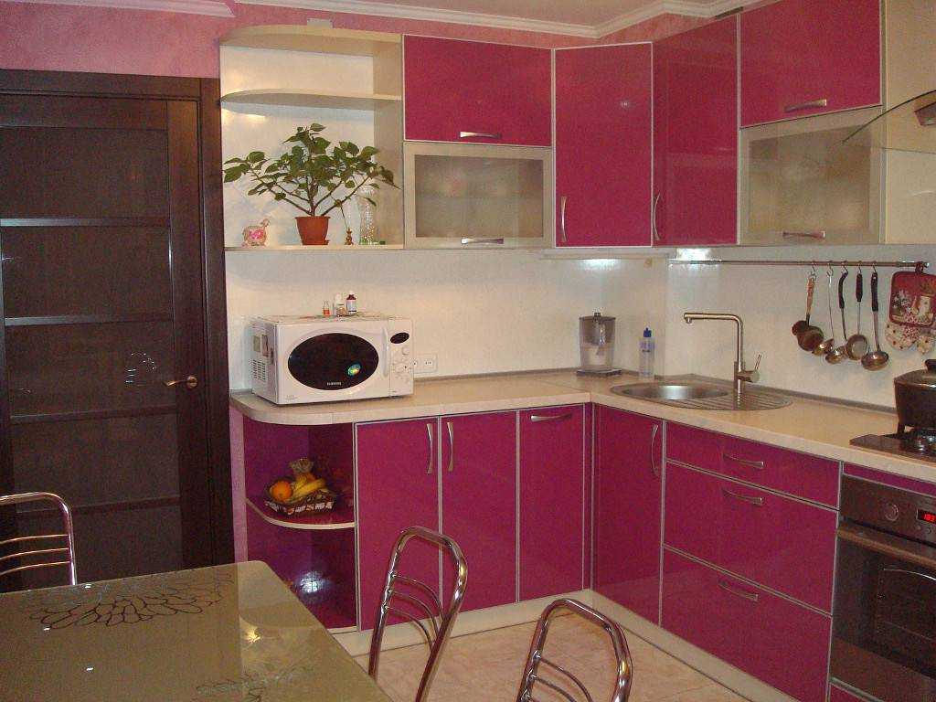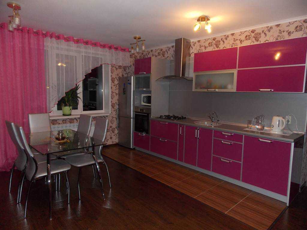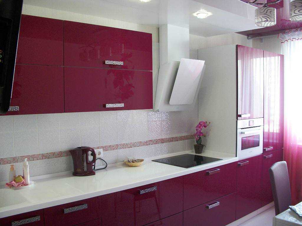 Неплохо смотрятся комнаты, оформленные в коричневом цвете с ярким пурпурным гарнитуром. Если последний сделать матовым, с приглушенными тонами, то интерьер вполне подойдет для кухни в классическом стиле.