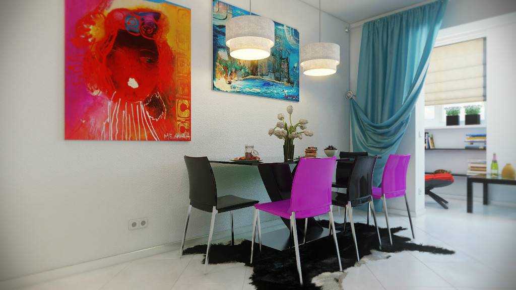 Различные тона розового и голубого тоже подходят к пурпурному, так как являются его составляющими. Так можно создать воздушную комнату в стиле пин-ап или шебби-шик. Старайтесь выделить один доминирующий оттенок: все цвета тут самодостаточны, а поэтому, если смешать их в равной пропорции, комната получится слишком пестрой и неуютной.