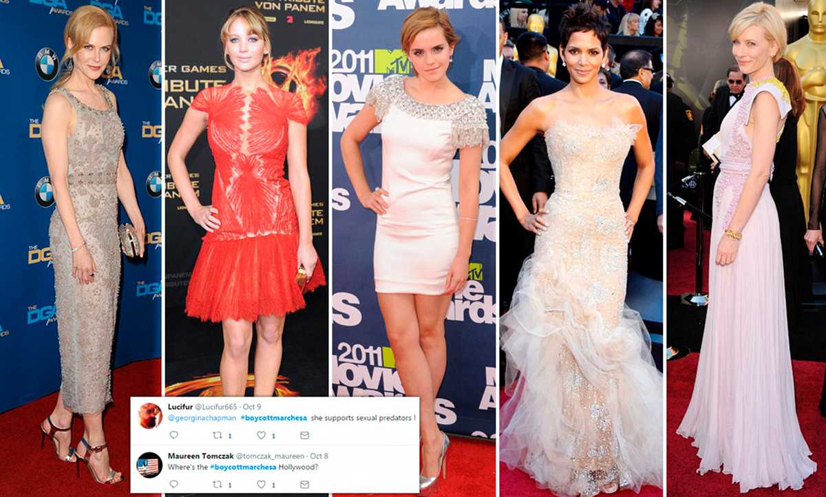 Успех бренда среди знаменитостей отчасти объясняется влиянием Мирамакс режиссер Харви Вайнштейн, муж Чепмен. Сообщается, что Вайнштейн оказывал давление на актрис, снимавшихся в его фильмах, чтобы они носили этот бренд. После Обвинения Вайнштейна в сексуальном насилии Из-за обвинений нескольких актрис, Marchesa, когда-то являвшаяся оплотом красной ковровой дорожки, избегалась всеми знаменитостями, присутствующими на различных церемониях награждения, в пользу других брендов. В мае 2018 г. Скарлетт Йоханссон сломал эту многомесячную тенденцию уклонения от красных ковровых дорожек Marchesa, надев платье, сшитое на заказ от бренда, Met Gala.
