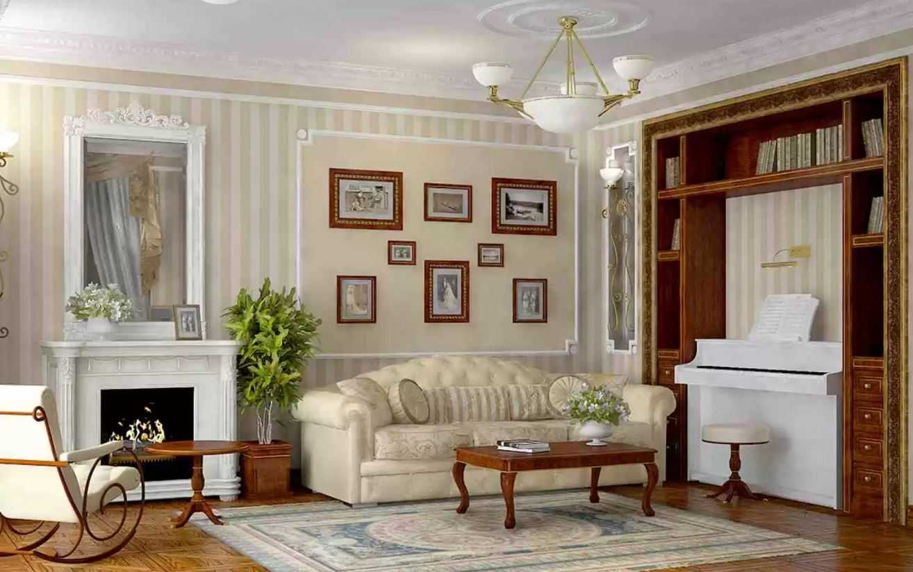 Светлая гостиная в стиле классицизм
