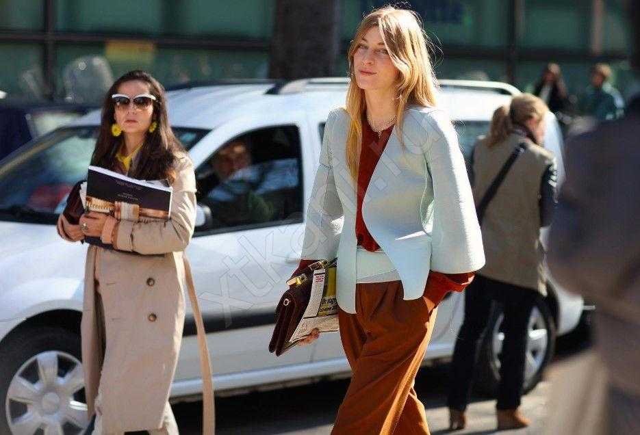Один из важных элементов итальянского стиля — брюки палаццо: широкие, струящиеся. Можно носить их с обувью на плоском ходу или на небольшом каблуке. По правилам, брючины должны закрывать половину каблука. Совет: приобретая брюки, нужно надевать именно ту пару обуви, которую вы будете с ними носить.