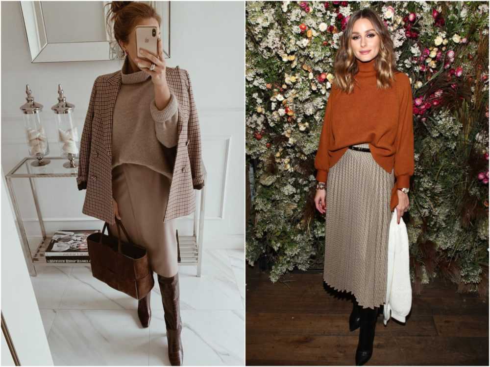 В остальных оттенках создать монохромный образ с юбкой будет сложнее. Но если постараться, то и это реально.