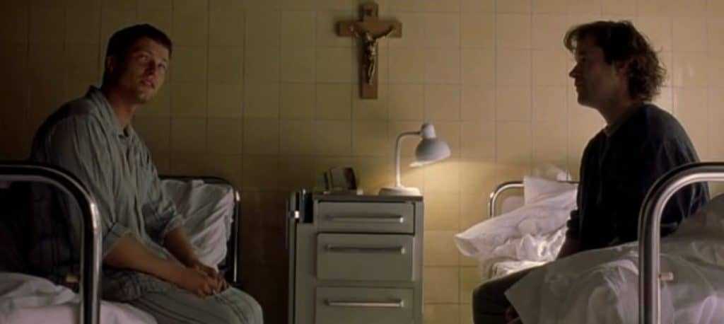 Герои рассказывают друг другу о приговоре врачей. В этот момент происходит нечто, ставшее пусковым механизмом дальнейших событий. Падает распятие и открывается тумбочка, в которой стоит бутылка текилы — это ведь просто знак свыше. Жизнь должна быть со вкусом, иначе что она? Серое, пресное существование, даже вспомнить нечего. Мартин и Руди отправляются искать закуску для неожиданно щедрого подарка.
