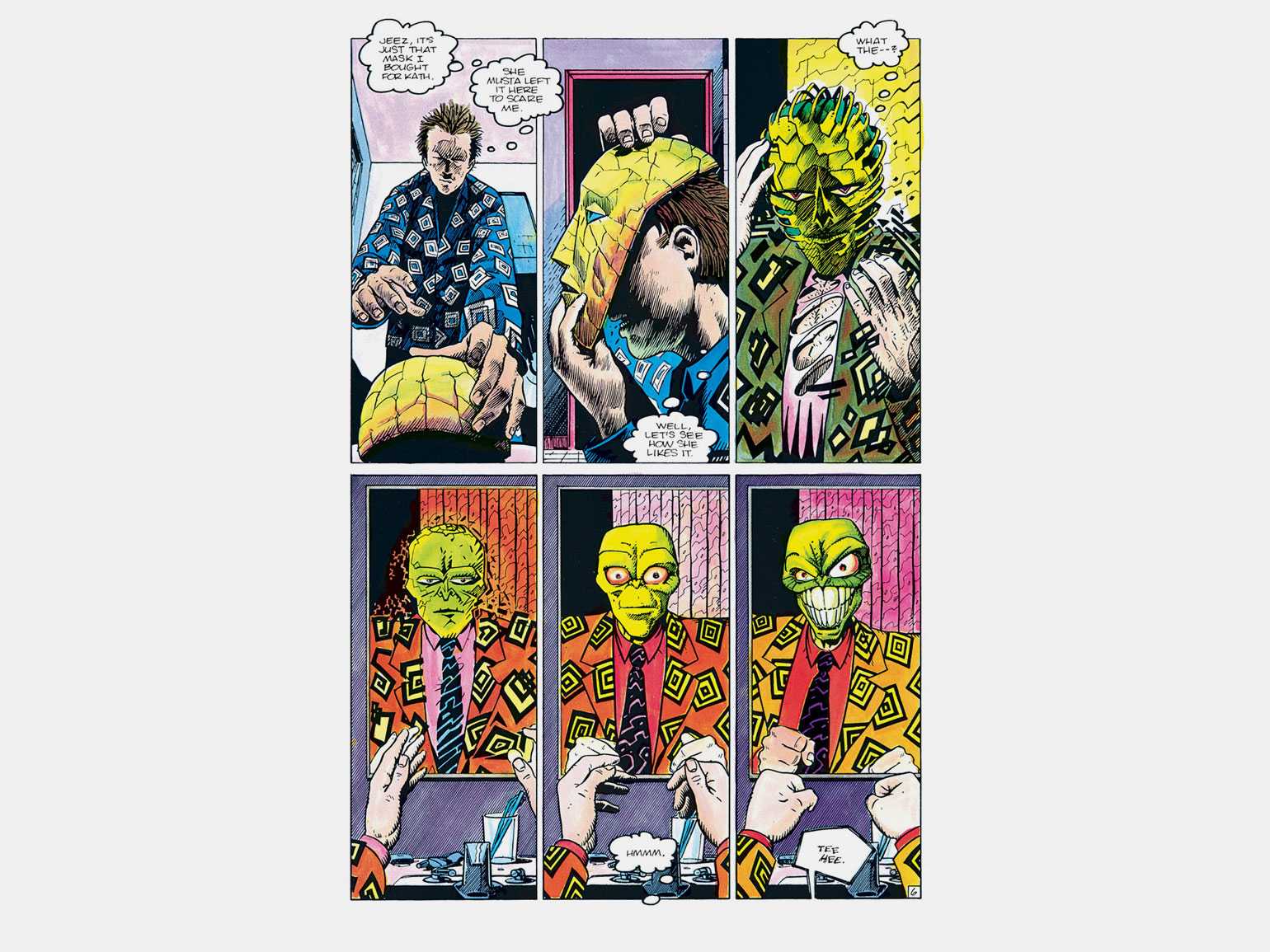 Первые концепты персонажа комиксов ещё в 1982 году нарисовал основатель издательства Dark Horse Comics Майк Ричардсон. Сам он назвал их «комбинацией Текса Эйвери и Терминатора». Пара попыток запуска персонажа прошла не слишком успешно, но в 1989 году им занялись Джон Аркуди и Даг Мэгни, в их руках «Маска» обрела законченный образ и стала популярной.