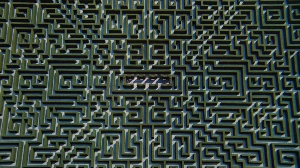 Заменив живые хищные кустарники Кинга на жуткий лабиринт, Кубрик снова дал подсказку зрителю, направляя его по пути неожиданного осмысления знаков и символов. Снежный лабиринт, в котором прячутся жена Джека Венди и их сын Дэнни – это воплощение «замороженной», безвыходной и невыносимой ситуации. Быть заложником самого близкого человека, бояться того, кто должен любить тебя и защищать – разве может быть что-то страшнее?