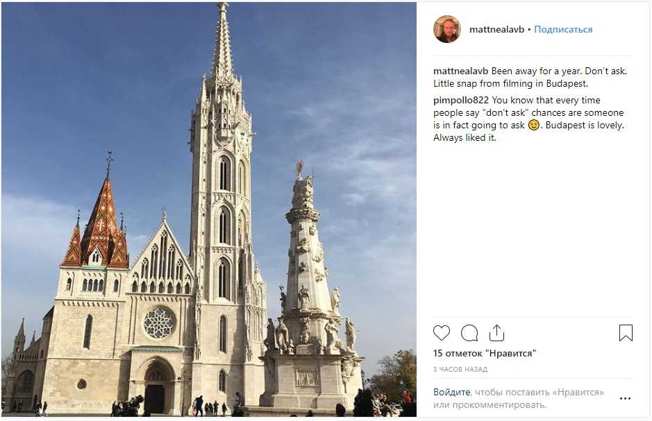 Другие актеры тоже выкладывают фотографии. В частности, Мэттью Нил, играющий роль Нимира (это один из головорезов банды Ренфри), опубликовал фото с места съемок в Будапеште.