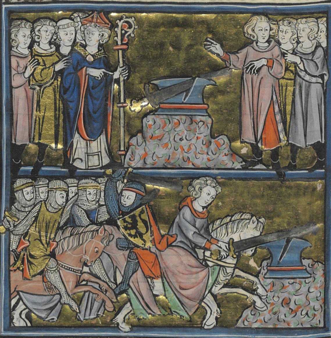 В битве с одним из самых доверенных рыцарей Пелинором меч Артура ломается, и Мерлин рассказывает ему о другом пророчестве. Якобы новый меч ему предстоит получить от Владычицы Озера. Тот клинок был самым мощным, поражал врагов без промаха, а ножны его служили вместо щита. Вместе со старцем Артур плывёт по водам озера и получает от его хозяйки легендарный Экскалибур с условием, что обнажать его он будет только во имя правого дела, а перед смертью вернёт его Владычице.