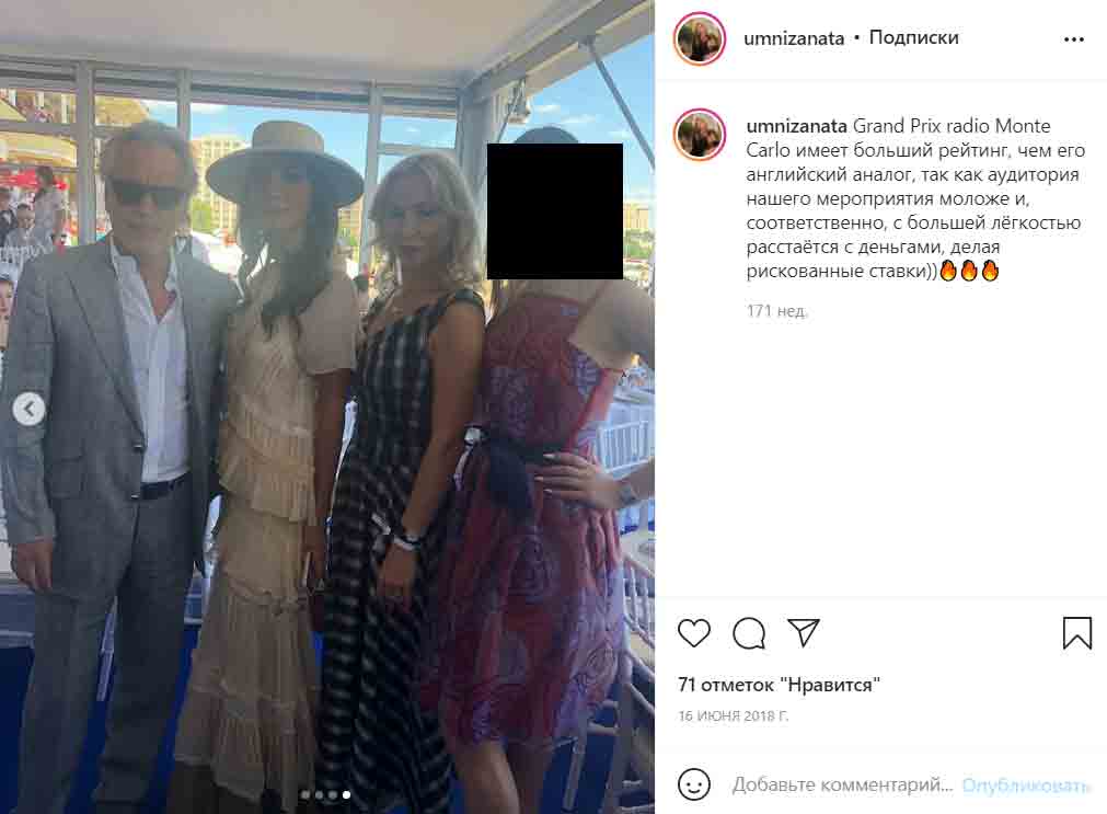 А спустя 8 лет, в 2018 году, Полуйчик публикует фотографию со скачек «Радио Монте-Карло», где Свириденко находится за кадром. Однако на видеозаписях других участников светского события видно, что Полуйчик и Свириденко вместе.