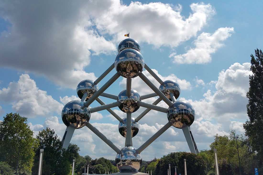 Многим Атомиум кажется похожим на колесо обозрения космического века. Однако на самом деле архитекторы, проектируя это сооружение, изобразили фрагмент кристаллической решетки, увеличенной в 185 миллиардов раз. Построен Атомиум был в 1958 году в качестве главного павильона Всемирной выставки в Брюсселе.