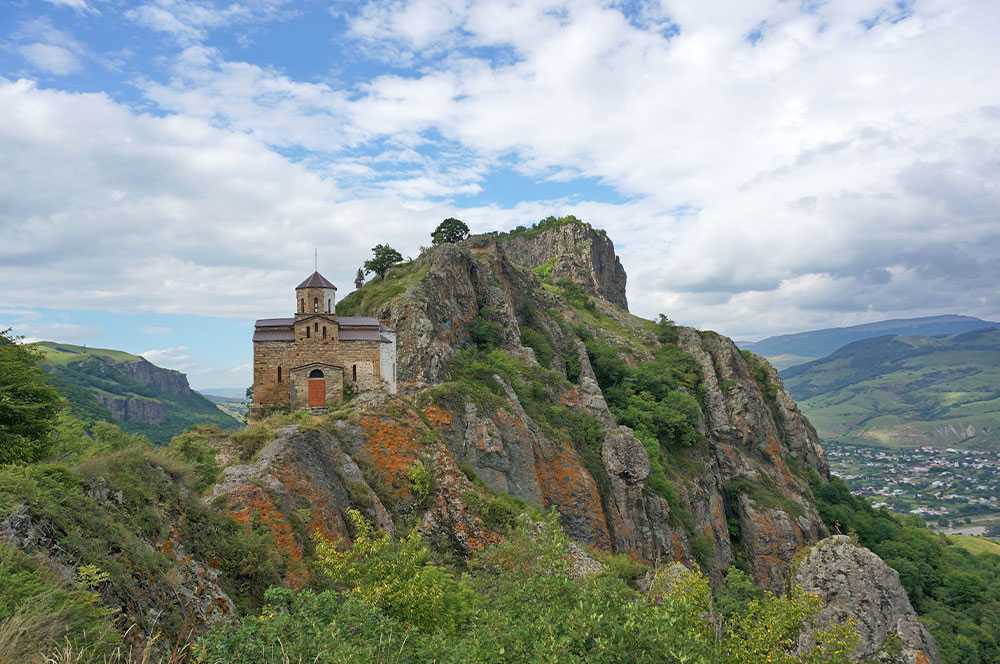 Что еще изображено на стенах святыни, расположенной над аулом имени Коста Хетагурова? Храм Шоанинский также украшен флагом республики Северной Осетии, где превалируют три цвета – белоснежный, алый и лимонный. Первый символизирует моральную чистоту, второй – отвагу и честь, а третий – изобилие и процветание.