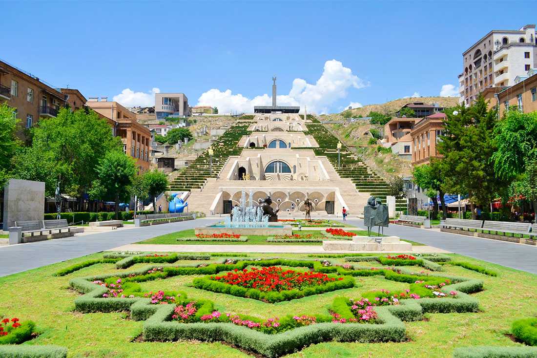 Монументальный комплекс в центре города служит прекрасным ориентиром для жителей столицы и путешественников. Его проект был разработан еще в 1924 году советским градостроителем Александром Таманяном. К реализации приступили только 1970-х гг. Комплекс представляет собой многоуровневый каскад, соединяющий две части города: центральную и северную. Каскад состоит из лестниц, открытых террас, цветочных композиций, фонтанов, скульптур и музейных комплексов. Во время подъема, открывается завораживающий вид на город. Особенно красивая панорама ждет посетителей ночью, когда зажигается вечерняя иллюминация.