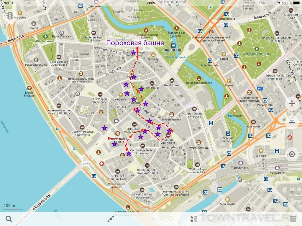 Еще в XVII веке в стене башни застряло несколько пушечных ядер, можете попробовать их найти. С момента создания башни (с 1330-х годов) она постоянно подвергалась обстрелу, ее несколько раз отстраивали заново и переименовывали. Во времена Российской империи всю крепостную стену и другие 27 башен снесли, оставив Пороховую башню как музейный экспонат. Однако, башня пребывала в запустении и постепенно разрушалась, пока в 1892 году ее не передали рижским студентам, обещавшим отреставрировать башню за свой счет. Часть денег студенты получили от проданного скопившегося за десятилетия в башне голубиного помета, остальное — вложили из собственного кармана. Общими усилиями они организовали зал для фехтования, несколько танцевальных залов и пивную. После Первой Мировой войны в башне размещались музей Латышских стрелковых полков, Военный музей, Нахимовское военно-морское училище, Музей Октябрьской революции и, наконец, Военный музей Латвии.