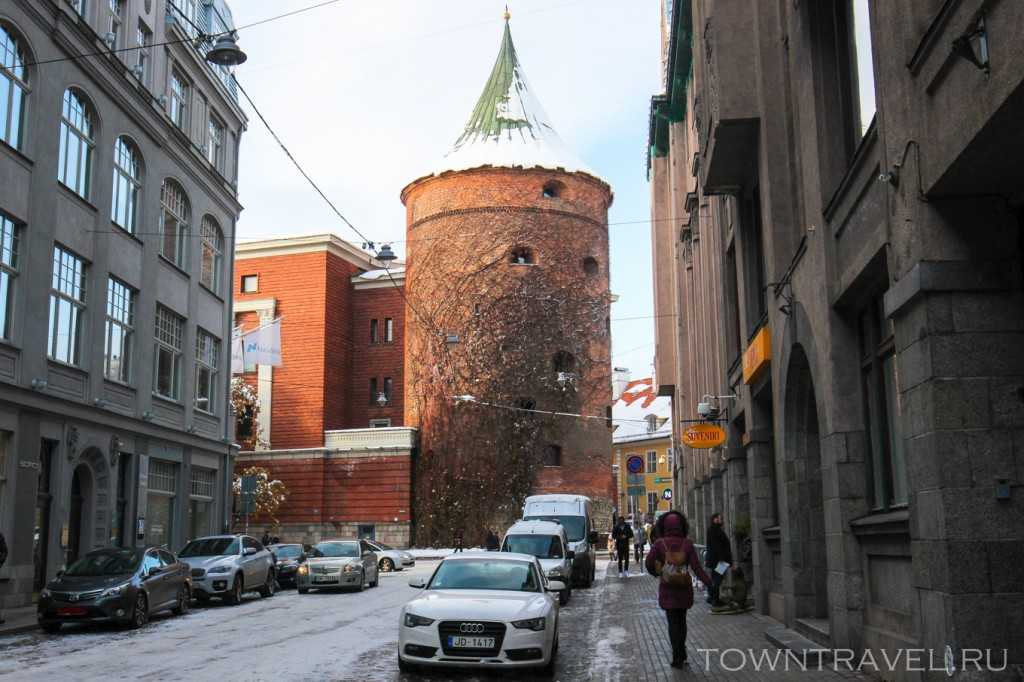Продолжаем идти по улице Meistaru ilea и через пру домов упираемся в Пороховую башню – единственную сохранившуюся башню крепостной стены (всего их было 28).