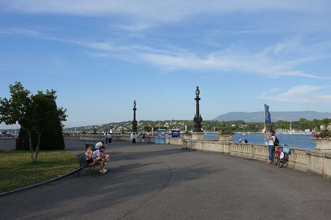 Набережная Монблана простирается вдоль северного берега женевского озера и с неё открывается потрясающий вид на горную цепь Монблан – особенно хорошо сюда приходить в конце ясного дня. В 1898 году на пристани перед отелем Beau Rivage итальянский анархист убил австрийскую императрицу Елизавету, в честь которой тут был установлен памятник.
