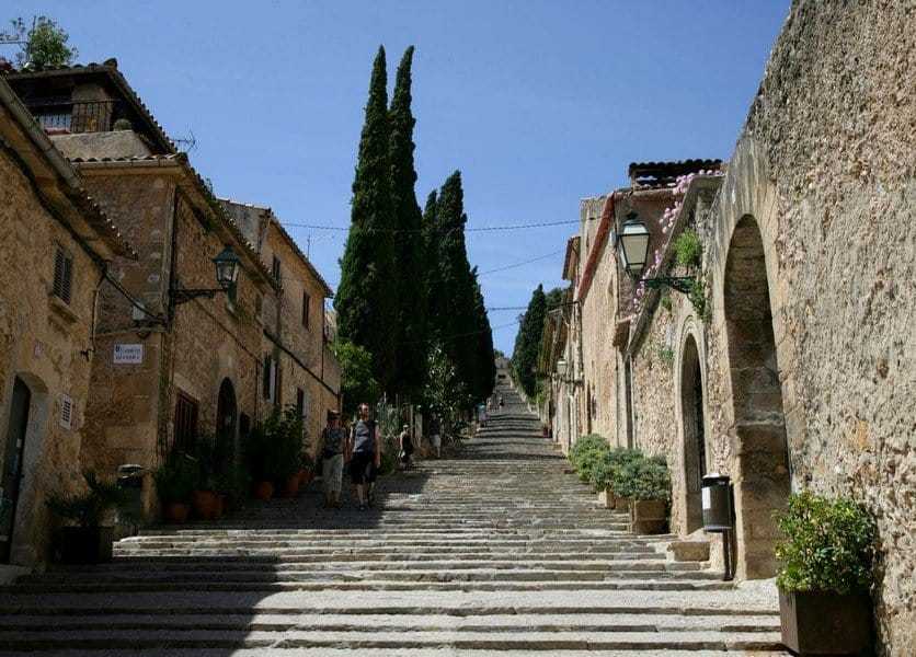 Это похоже на лестницу в небо. 365 ступеней ведут от центра города Пальенса к прекрасной церквушке Església del Calvari XVIII века на вершине возвышенности. Некоторые паломники проделывают этот путь на коленях. Оказавшись в спартанском интерьере храма, можно ощутить безмятежность и прилив покаяния. Наверху, рядом с церковью, расположено небольшое кафе, где можно послушать живую музыку в исполнении гитариста. Отражая мозаику Пальенсы из терракотовых крыш и церковных шпилей, с высоты холма открываются захватывающие дух горизонты, протянувшиеся вплоть до горных цепей Трамунтаны.