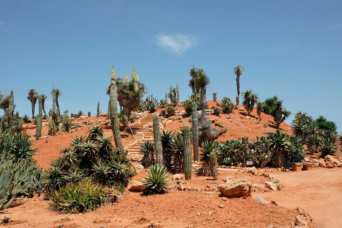 Этот необычный ботанический сад демонстрирует огромную коллекцию привезенных со всего мира кактусов, возраст которых в некоторых случаях достигает нескольких веков, а высота – несколько метров. Искусственные террасы, созданные специально для стимулирования роста кактусов, защищают растения от ветра.