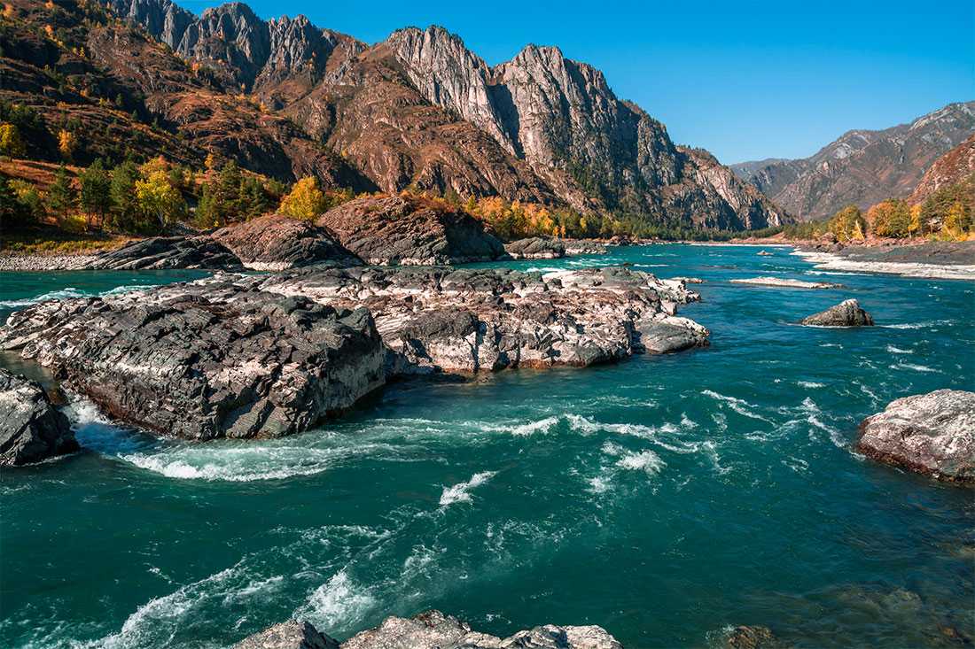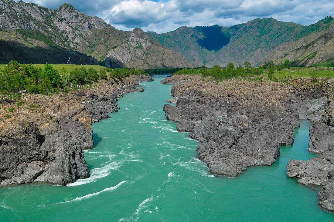 Это и есть Тельдекпенские пороги, считающиеся самыми красивыми и протяженными на Катуни. Сила и мощь водного потока сильно варьируется в зависимости от сезона: в мае-июне, т.е. в период активного таяния ледников в горах пороги представляют немалую опасность, тем более что для них характерно наличие водоворотов, турбулентности, мощных подводных течений, а также водяных «грибов» и «бочек».
