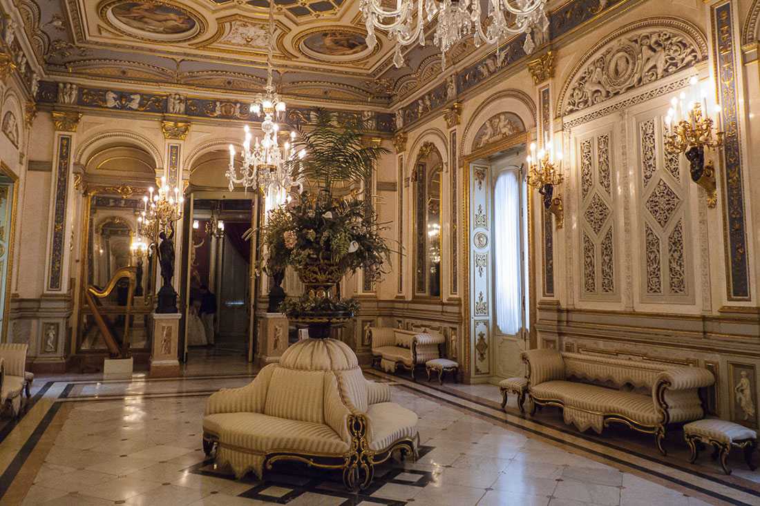 - «Золотой зал», поражающий потолком с золоченым декором, выполненным в стиле ренессанса.