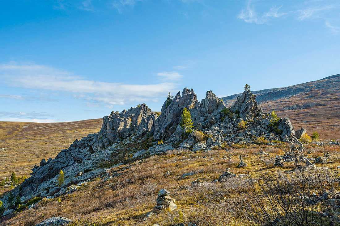 Недалеко от Каракольских озер есть удивительное место с не менее удивительным названием – Замки горных духов. Такое прозвище местность получила из-за необычного рельефа: на абсолютно ровном плато возвышаются 20-30-метровые скалы причудливой формы – издалека это действительно напоминает какой-то средневековый замок.