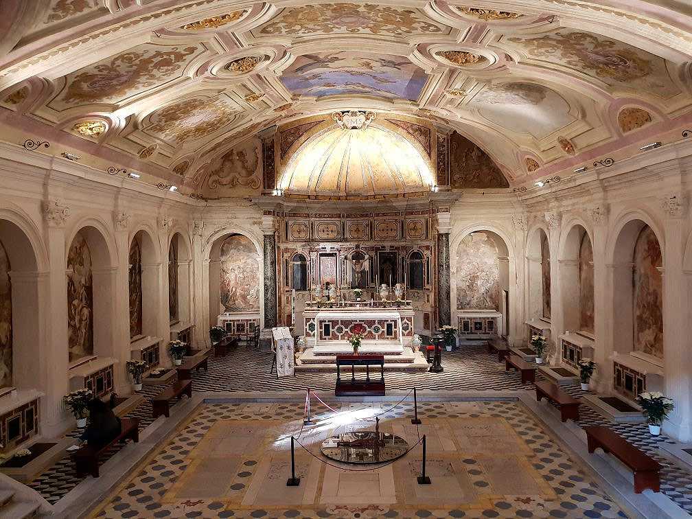 Говоря об этой базилике XVII века, нельзя не вспомнить известные картины Андреа Ваккаро и Луки Джордано или современные скульптуры Риккардо Далиси. И все же незабываемым это место делают именно его жуткие катакомбы. Расположенная под высоким алтарем крипта открывает вход в мрачное подземелье, где вы сможете познакомиться с довольно жутким методом средневекового захоронения.