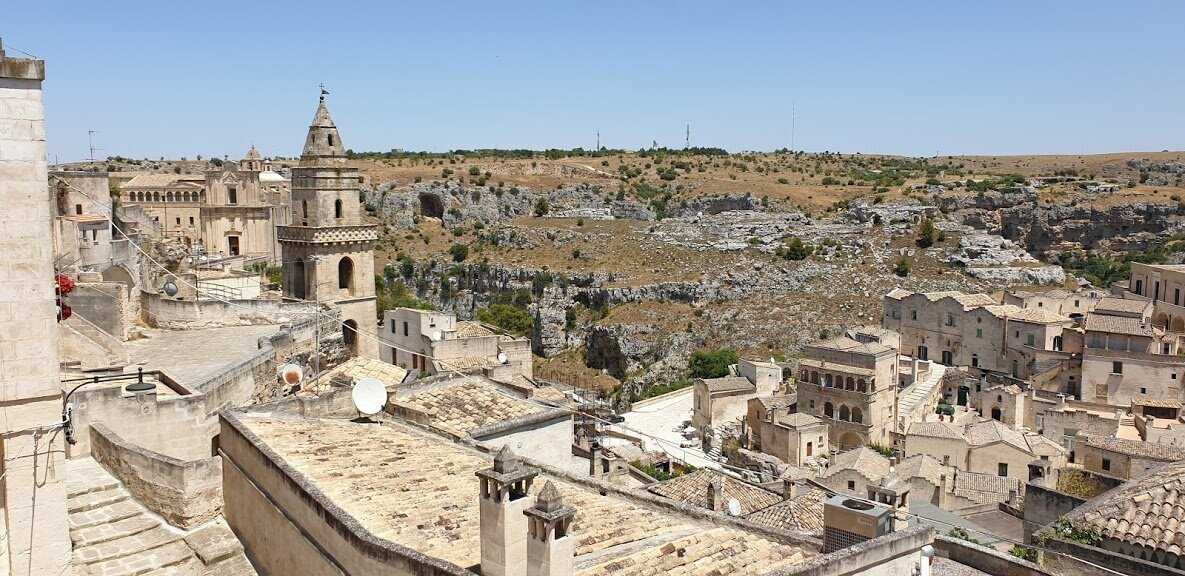 Осмотр сасси удобно начинать с дальней точки Сасси Баризано — Piazza San Pietro Barisano. Приготовьтесь много спускаться и подниматься по лестницам, зато со смотровой площадки церкви можно увидеть всю старую Матеру.
