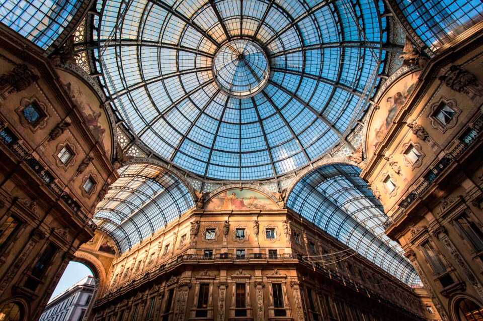 Крыша здания выполнена в новаторском для того столетия стиле — роскошный стеклянный купол, обрамленный железом. В центре галерее на полу мозаикой выложен итальянский герб с изображением быка. Считается, если наступить пяткой на его пах и 3 раза покрутиться, то неизбежно станешь удачливым и богатым. Этот пассаж уже давно стал неизменным местом для показов мод, концертов и выставок.