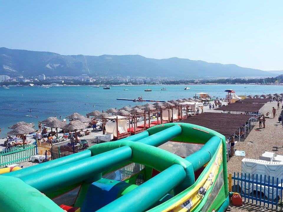 Сады морей – обширный галечный пляж. Он протянулся на несколько гектаров, поэтому даже в курортный сезон места достаточно всем. Для удобства отдыхающих предусмотрены пологие спуски: по ним можно завезти на берег коляски. Берег усыпан мелкой и средней галькой, поэтому для купания рекомендуется приобрести специальную обувь. Зато водичка здесь всегда чистая и прозрачная. Заход в море пологий, поэтому здесь вольготно себя чувствуют даже те, кто неуверенно держится на воде.
