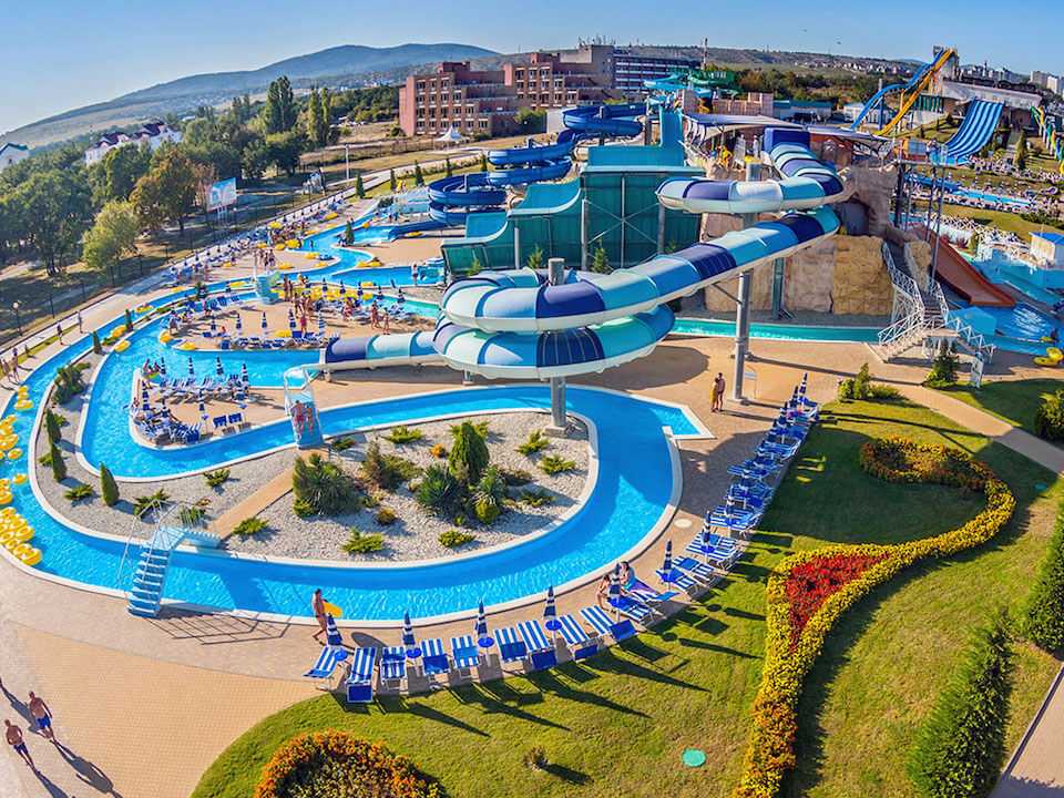 Аквапарк принял первых посетителей в 2004 году и быстро стал любимым местом отдыха у местных жителей и гостей курорта. Он занимает территорию около 15 га. Здесь представлены развлечения для детей и взрослых: