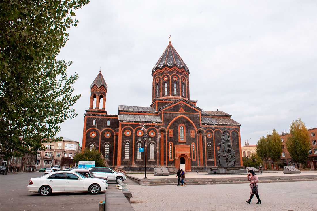Расположенная в южной части площади Вардананц церковь Аменапркич (церковь Всеспасителя) считается одной из самых значимых достопримечательностей не только Гюмри, но и всей Армении. Этот черный с оранжевой отделкой храм был возведен в 1860-1873 годах по образу кафедрального собора в Ани – старинном армянском городе, расположенном ныне на территории Турции.