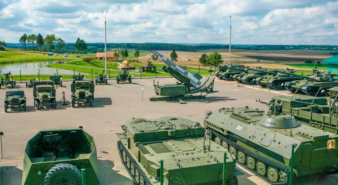На площадках боевой, инженерной техники, ПВО и авиации собраны танки и бронетранспортеры, боевые самолеты и вертолеты, зенитные комплексы, орудия и самоходные установки. На территории комплекса есть озеро с прокатом лодок, а в ресторане быстрого питания можно попробовать настоящую солдатскую кашу.