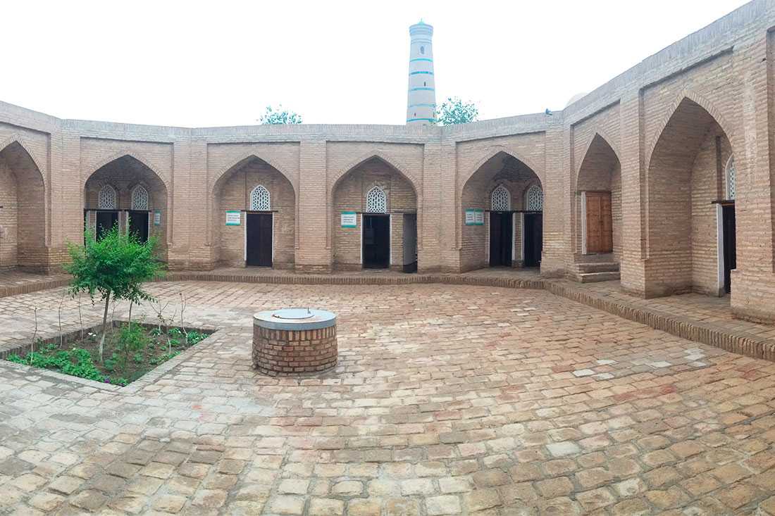 Зачем посещать. Хорошо сохранившееся здание медресе из светлого кирпича – памятник архитектуры. Это прямоугольное сооружение с угловыми башнями, одноэтажными кельями-худжрами и купольной мечетью.