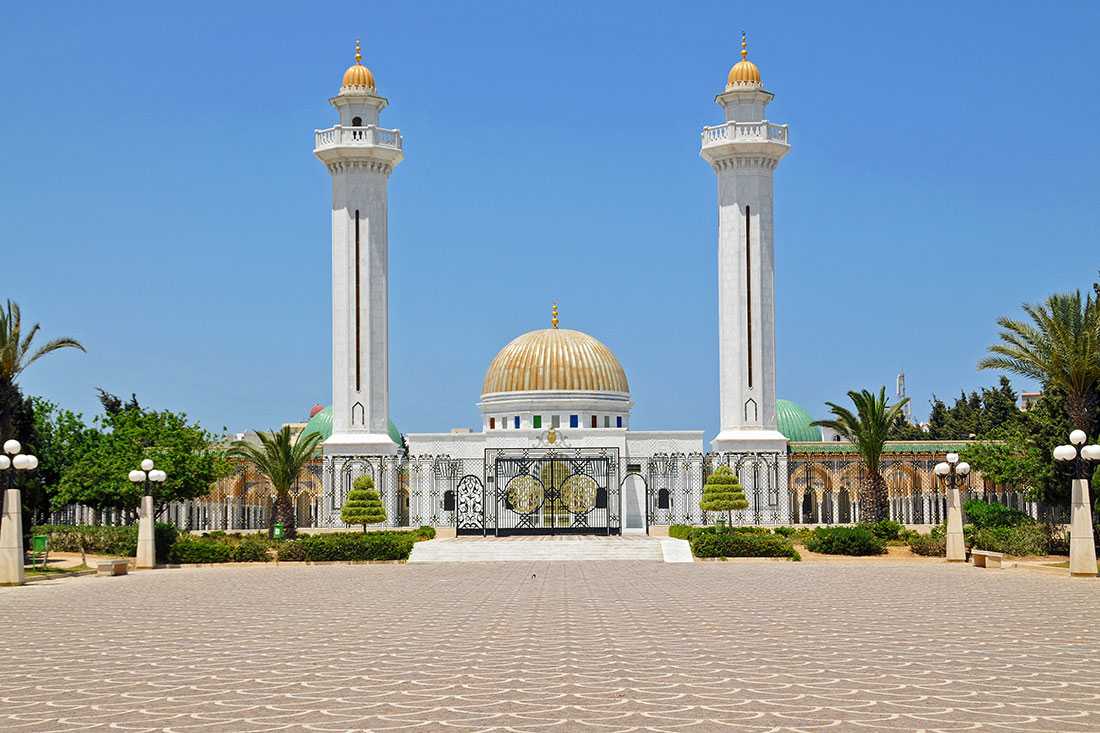 Эта погребальная мечеть, увенчанная огромным золотым куполом и двумя возносящимися в небо минаретами, была специально построена в 1963 году для предстоящих захоронений всех членов семьи Бургибы. Фасад здания покрыт изящной тонкой плиткой, а 25-метровые минареты выполнены из итальянского мрамора. Сама гробница Бургибы, умершего в 2000 году, окружена ослепительным интерьером из инкрустированного стекла, эффект которого усилен феерическо-мощной люстрой.