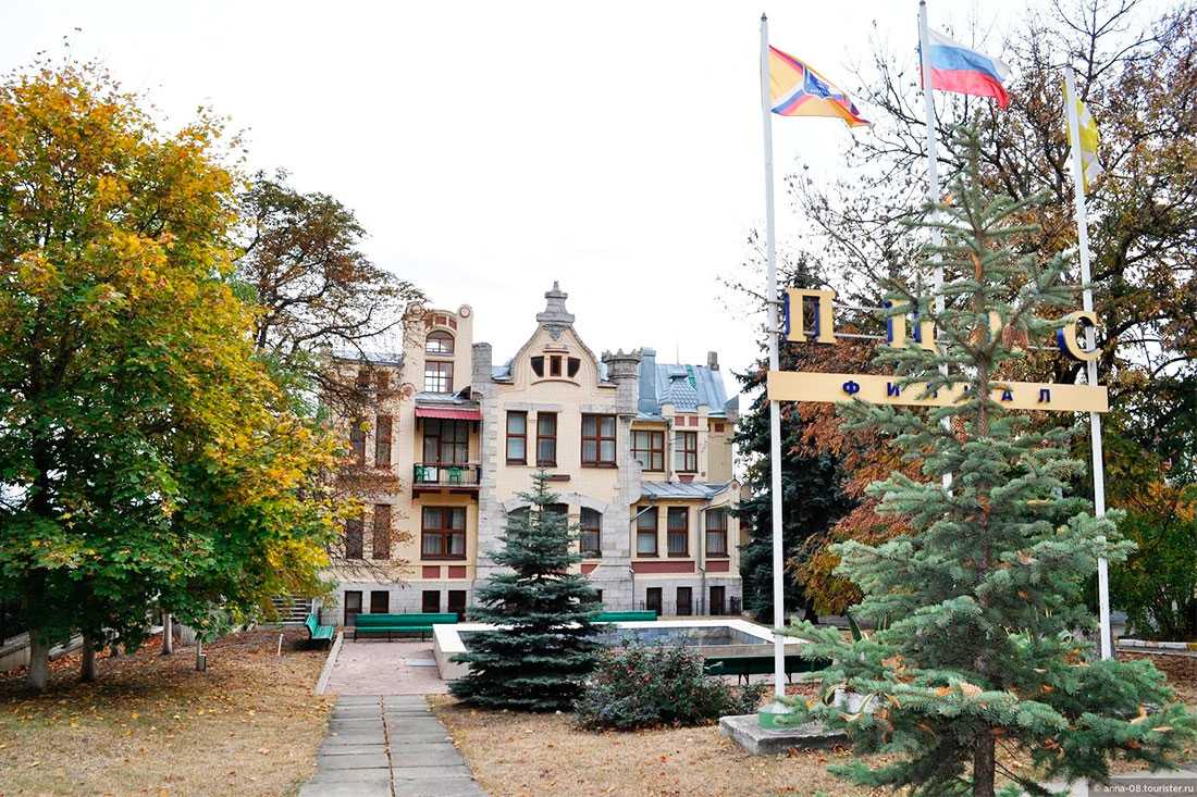 Здание лечебницы оригинальной архитектуры, украшенное башенками, фигурной кладкой и коваными деталями, является одной из достопримечательностей парка «Цветник».
