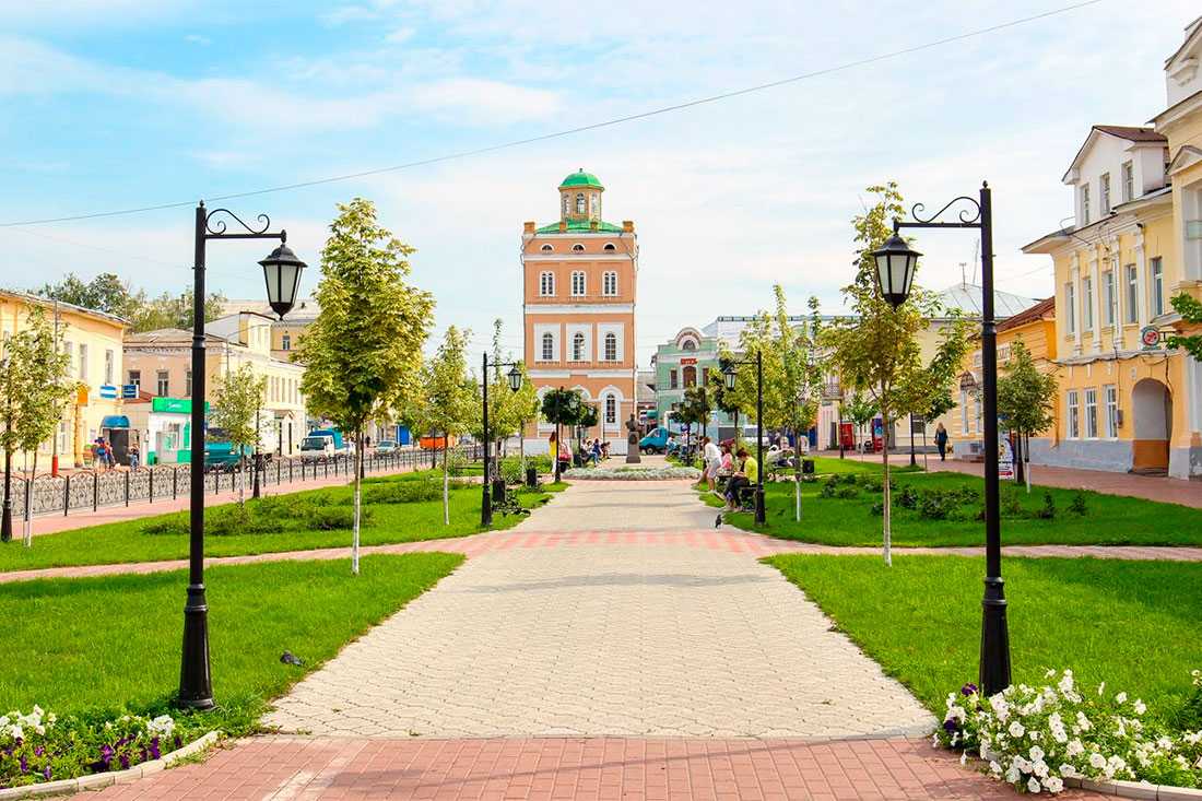 - Затем стоит прогуляться по ул. Первомайской и посетить Художественную галерею, пройтись мимо городского парка, где стоит памятник Илье Муромцу. За парковой зоной размещается строение Торговых рядов.