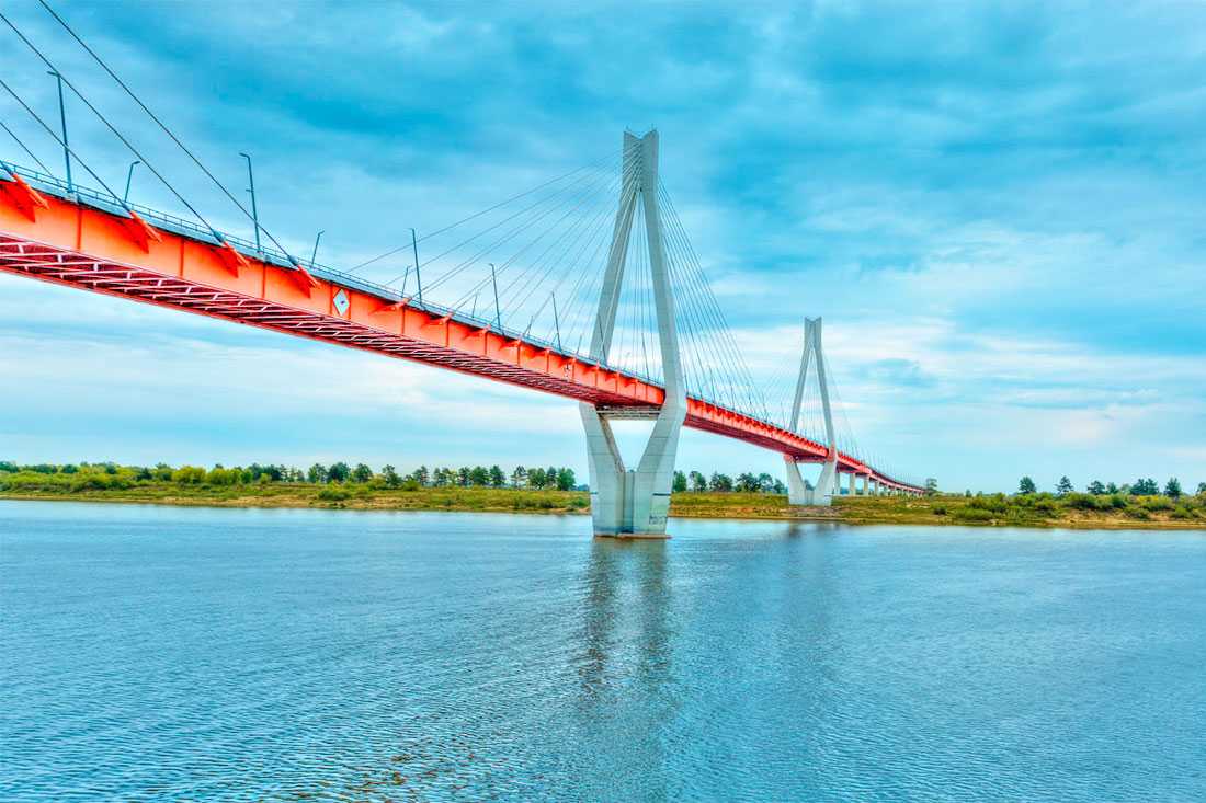 Мост с вантовой конструкцией был проложен над рекой Окой в 2009-м. До этого сообщение с другим берегом осуществлялось с помощью понтонного моста и парома. Строительные работы заняли два года. Высота главных опор составляет 85 м, поэтому сооружение просматривается из разных районов города.