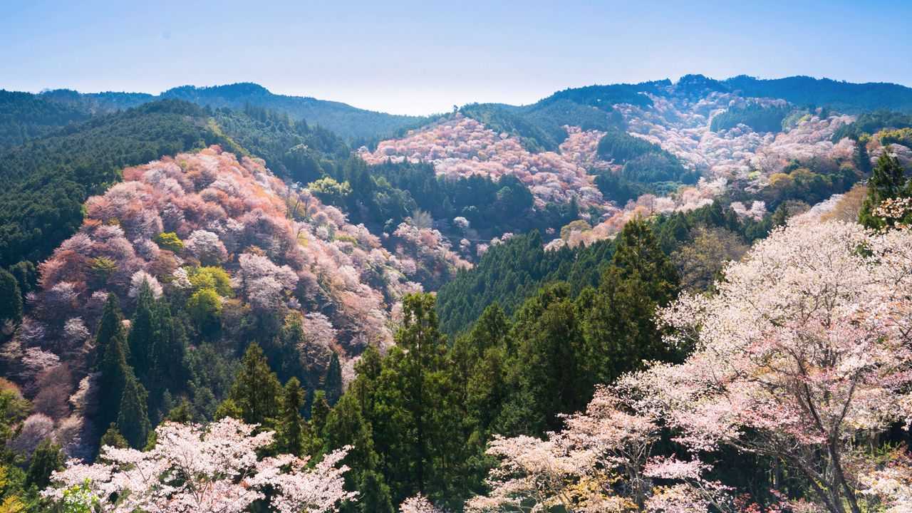 Одна из главных японских достопримечательностей в сезон цветения сакуры – гора Ёсино, на склонах которой растёт около 30 000 вишнёвых деревьев примерно 200 сортов, главным из которых является сиро-ямадзакура (Prunus jamasakura). С горы открывается впечатляющий вид – можно одним взглядом охватить тысячи вишневых деревьев в любом направлении.