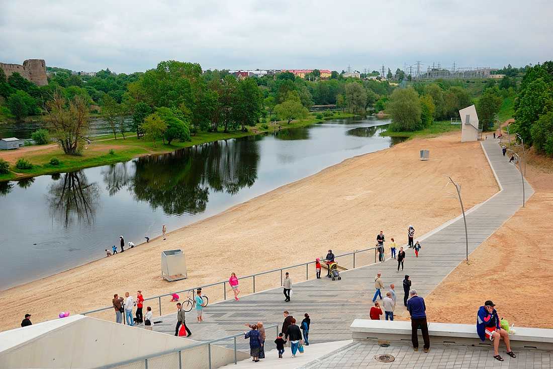 Он находится близко от главных городских достопримечательностей: с реки открывается прекрасный вид на Нарвский замок и Ивангородскую крепость. А в 2013-м власти города занялись благоустройством прибрежной местности. Согласно проекту, пляж обзаведется раздевалками и душевыми кабинами, откроются пункты проката спортивного оборудования, места общественного питания.