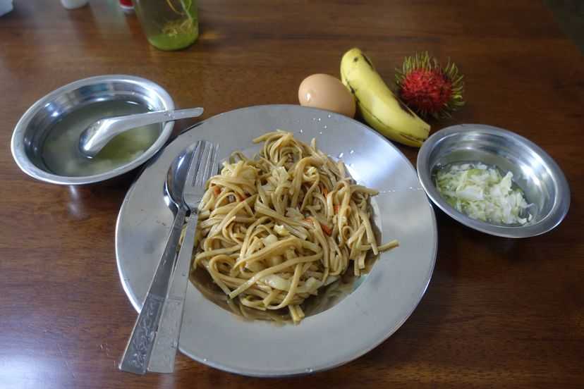 В хорошем и недорогом месте (там обычно не говорят по-английски или говорят только пару слов) вам подадут огромную тарелку свежей домашней лапши с овощами и/или овощами и курицей. Вкуснотища!
