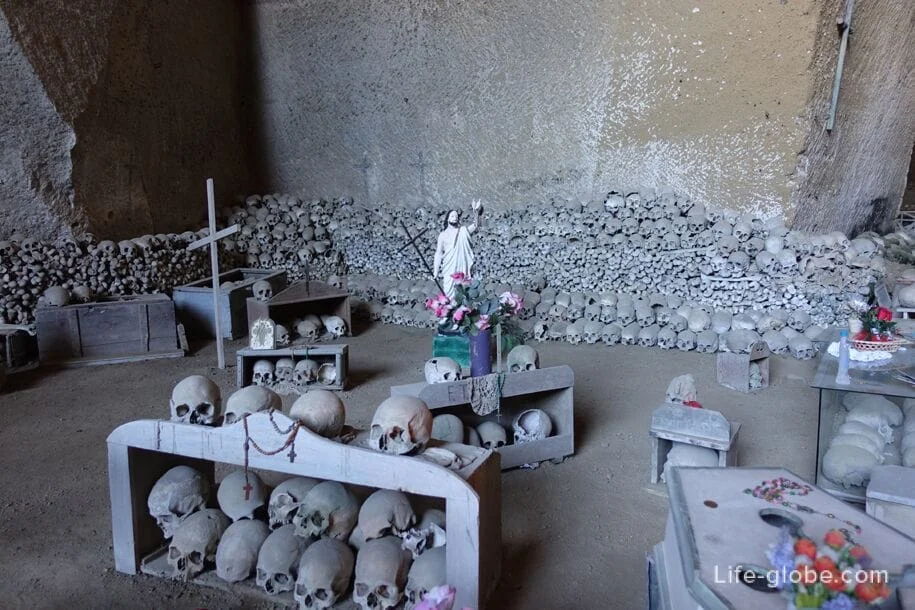 По бокам каждого прохода находятся огороженные территории, где собраны черепа, большие берцовые кости и бедренные кости. Многие кости и черепа просто сложены в кучи, тогда как другие находятся в ящиках. Подробнее о кладбище Фонтанелле…