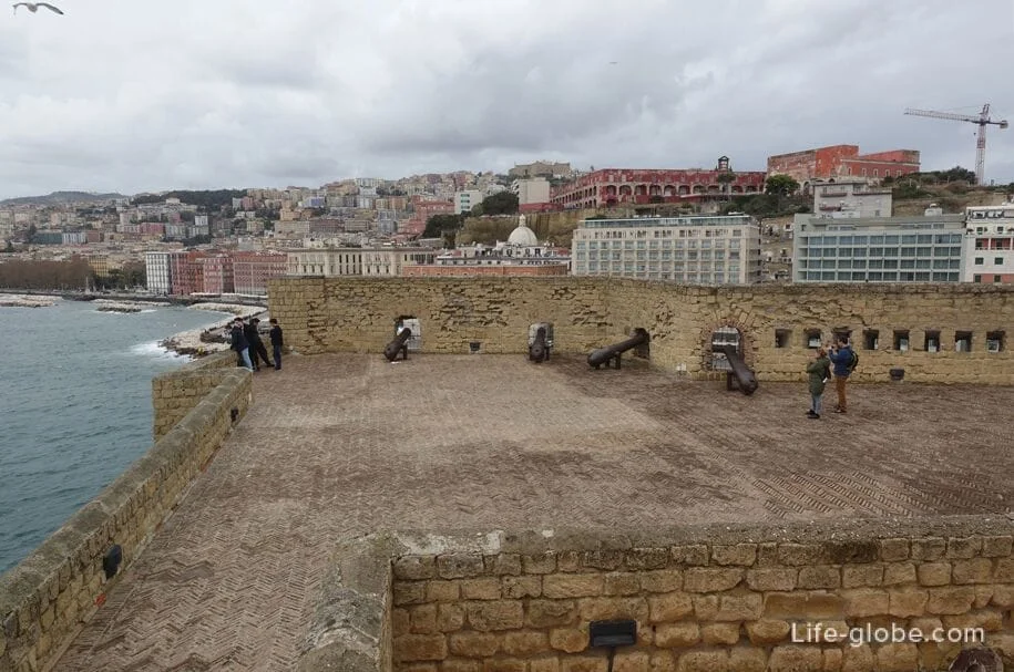 В замке есть несколько террас разного уровня и балкон, с которых открываются живописные виды на набережную, Неаполитанский залив и некоторые окрестности. Подробнее о замке Кастель-дель-Ово в Неаполе…