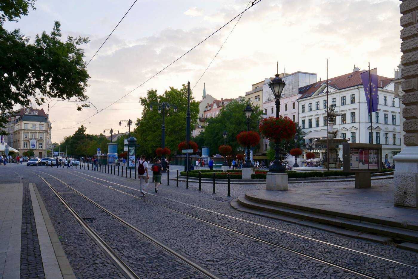 В полутора километрах от башни UFO расположена одна из центральных площадей Братиславы, откуда начнется прогулка по Старому городу. В центре площади Гвездослава находится памятник Гвездославу. «Кто же такой Гвездослав?», — спросите вы. Павол Ворсаг Гвездослав — это известный в словацких кругах поэт и переводчик, творивший в конце 19-начале 20 века. Здесь же, на площади, установлен памятник Гвездославу, так что вы можете узнать как он выглядел и продолжить прогулку. Также на площади вы увидите здание Словацкого национального театра (кстати следите за афишей, сюда часто приезжают известные труппы со всего мира), а также посольства США и Германии, ну и, кроме прочего, фонтаны, кафе с открытыми верандами, магазины, лавочки и толпы людей.