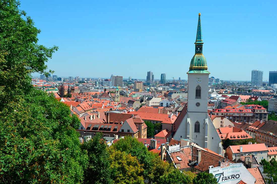 - Братислава является столицей и находится в предгорье Малых Карпат. Здесь континентальный климат без сильных морозов зимой. Центральная часть города закрыта для автомобилей и является пешеходной. Гостям города стоит посетить Словацкую национальную галерею, зоопарк, собор св. Мартина и Национальный театр Словакии, а также посмотреть на Старый мост, Рыбацкие ворота, Михальские ворота и мавзолей Хатама Софера. В городе есть отели разного уровня, рестораны и кафе, а в небольших сувенирных магазинах можно приобрести изделия из древесины, шерсти, керамики. Купить сувениры подешевле можно на местных рынках;