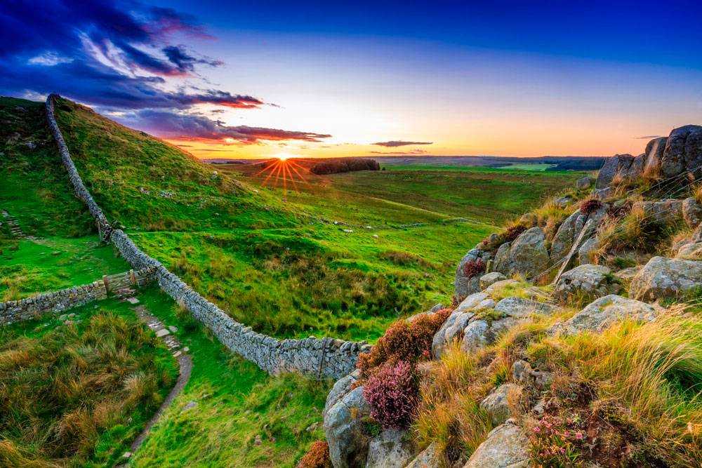 Это самый известный и выдающийся памятник античности во всем Соединенном Королевстве. Когда-то Стена Адриана была оборонительным сооружением, возведенным около 122 г. до н.э. Стена защищала римские земли от набегов пиктов. Строительство укреплений император Адриан поручил римским легионам. Стена Адриана представляет собой более ста километров в длину, шириной от 3 до 4 метров и в высоту более пяти метров, десятки сторожевых и сигнальных башен, 16 фортов, рвы и земляные валы – и все это появилось за 6 лет. Сегодня все еще можно посмотреть значительную часть стены.