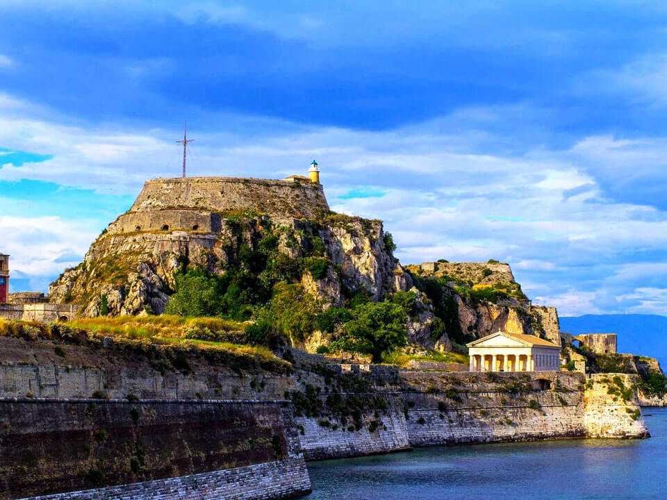 На искусственном острове, отделенном от Керкиры каналом, возвышается Палео Фрурио – одна из старейших крепостей. Начало ее строительства отнесено к VII веку, периоду строительства крепостных укреплений города византийцами. Она была расширена во времена набегов жестоких османцев, и в это же время канал стал защитным рвом.