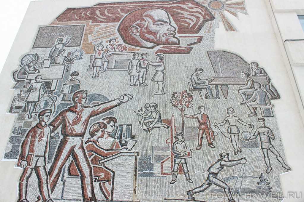 Советское наследие в виде изображений на зданиях в полной мере сохранилось и здесь.