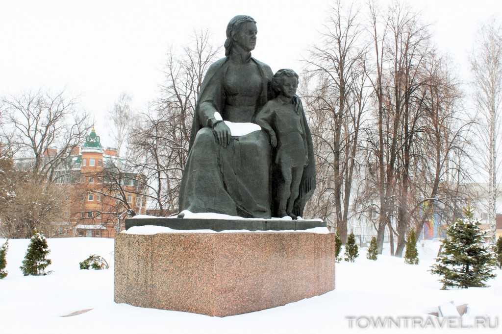 В год 100-летия рядом с домом был открыт памятник — бронзовая скульптурная композиция «М.А. Ульянова с сыном Володей»