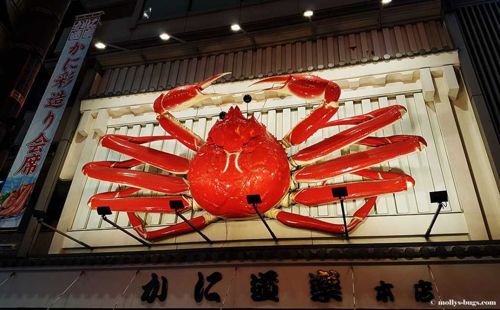 Найти его совсем не сложно, особенно если вечером вы будете прогуливаться по очень оживленной улице Shinsaibashi, или вдоль канала, который пересекает самые большие улицы города. Перепутать или не заметить этот ресторан не получится — на его фасаде находится огромный краб с шевелящимися ногами, клешнями и глазами. Внизу у входа в ресторан продается много еды на вынос для тех, кто не хочет заходить внутрь и ждать, пока ее приготовят.