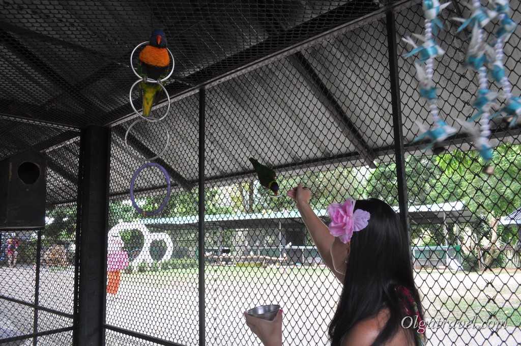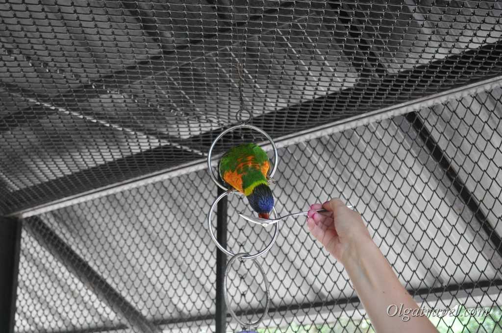 Возле входа в Парадайз парк (Paradise Park Farm) встречают работники парка, дают корм для птиц и можно пройти влево в клетки с птицами и покормить маленьких попугаев.